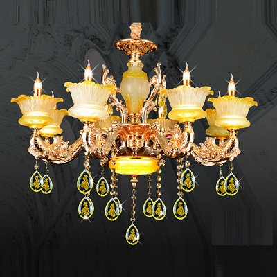 Phải nói rằng đèn chùm pha lê nến DCT-SG-348 là sự kết hợp tinh túy nhất giữa phong cách của những chiếc đèn chùm truyền thống và sự tinh tế hiện đại của phong cách đèn nghệ thuật châu âu. Những chiếc đèn giống như chiếc nên lung linh được xếp quanh bệ đèn một cách hoài hòa, khung đèn được uốn cong đầy quyến rũ và những hạt pha lê có chứa hoa văn màu vàng đầy ấn tượng tạo nên một tác phẩm tuyệt mỹ, đẹp bất chấp thời gian. Đèn với tông màu vàng chủ đạo mang lại cảm giác ấm cúng và sang trọng, và đặc biệt rất phù hợp với gia chủ nào mệnh kim và yêu thích màu vàng hoàng gia này.