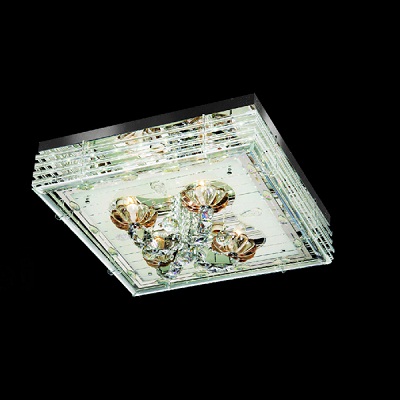 Đèn thiết kế đơn giản  và hiện đại với mâm  với dạng hình hộp vuông có khung kim loại được gắn nhiều hạt pha lê màu trắng tinh khôi và lấp lánh cùng tâm điểm là những bông hoa màu vàng ánh. Đèn vừa mang nét đẹp tinh tế vừa dịu dàng quyến rũ, phù hợp với nhiều không gian nội thất hiện đại.