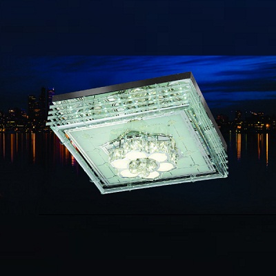 Đèn thiết kế đơn giản  và hiện đại với mâm tròn với dạng hình hộp vuông có khung kim loại được gắn nhiều hạt pha lê màu trắng tinh khôi và lấp lánh cùng tâm điểm là vòng tròn ở giữa. Đèn vừa mang nét đẹp tinh tế vừa dịu dàng quyến rũ, phù hợp với nhiều không gian nội thất hiện đại.