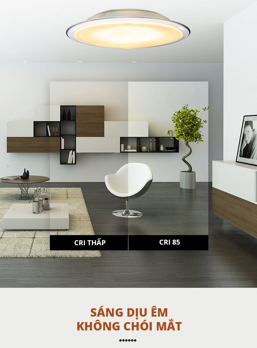 - Với chỉ số hoàn màu CRI 85, đây là chiếc đèn cho hệ màu gần với ánh sáng mặt trời (CRI 100), đèn trần tạo cảnh HH-LAZ502288 sẽ giúp cho không gian của bạn trông luôn thật tự nhiên, cảm giác dễ chịu như được chiếu sáng bởi ánh sáng tự nhiên vậy. Được thiết kế theo phong cách tối giản, không chỉ là chiếc đèn chiếu sáng, đèn trần tạo cảnh HH-LAZ502288 còn là vật dụng làm tăng lên nét sang trọng, hiện đại cho không gian của bạn.