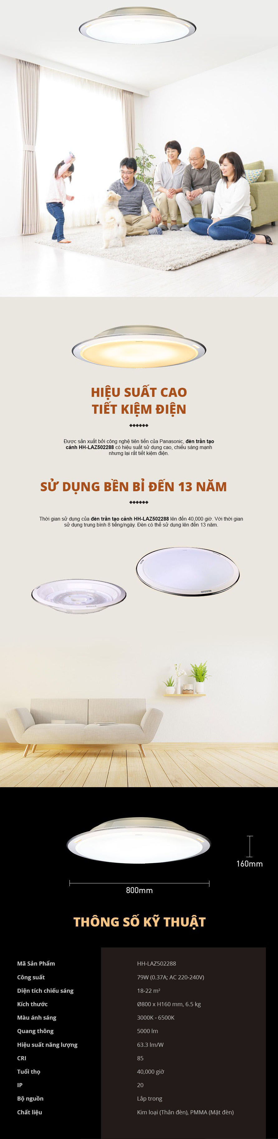 Thông số kỹ thuật của Đèn Trần Led Phòng Khách D800-79W Panasonic HH-LAZ502288: