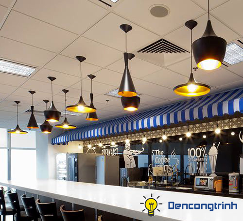 Đây là đèn thả trần cho quán ăn mà mình chụp được ở Hà Nội, nếu sử dụng cho quầy bar cũng khá đẹp và ấn tượng đó.
