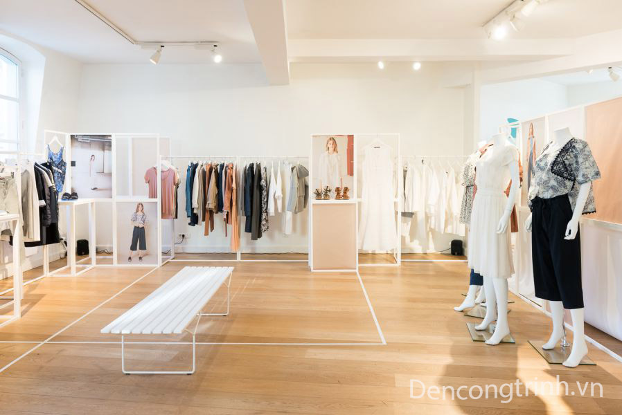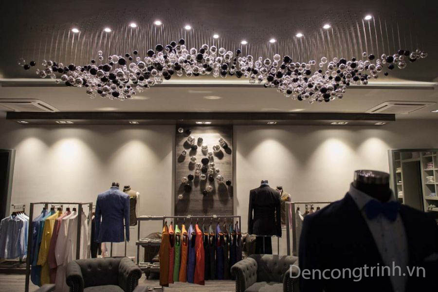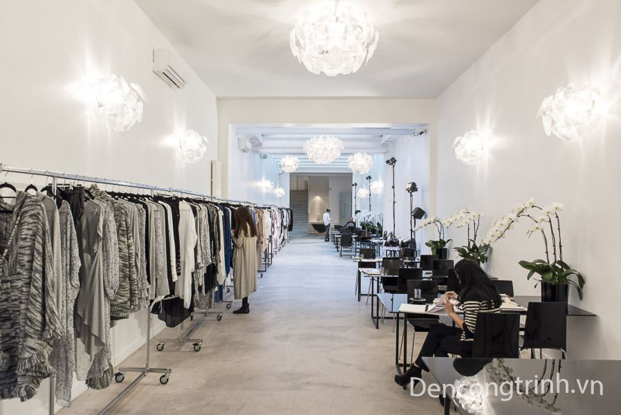 Với ánh sáng vừa đủ từ hệ thống đèn trang trí cỡ lớn. Showroom thời trang mang tới cảm giác dễ chịu cho mọi khách hàng. Thiết kế đèn như những bông hoa lớn mang tới vẻ đẹp hoàn mỹ cho nội thất showroom hiện đại.