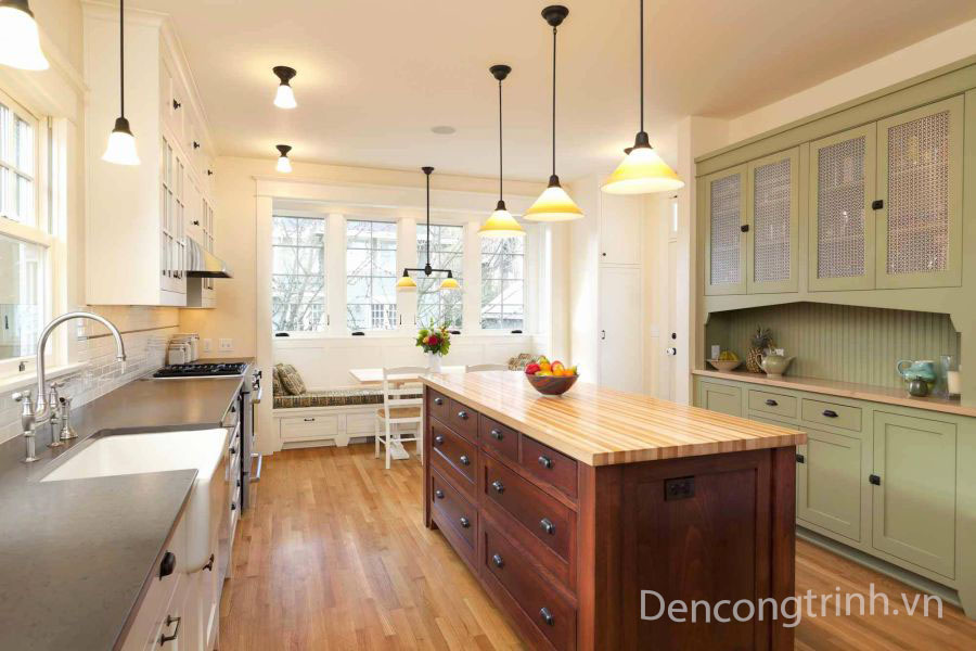 5. Đèn thả đơn giản trong showroom phòng bếp